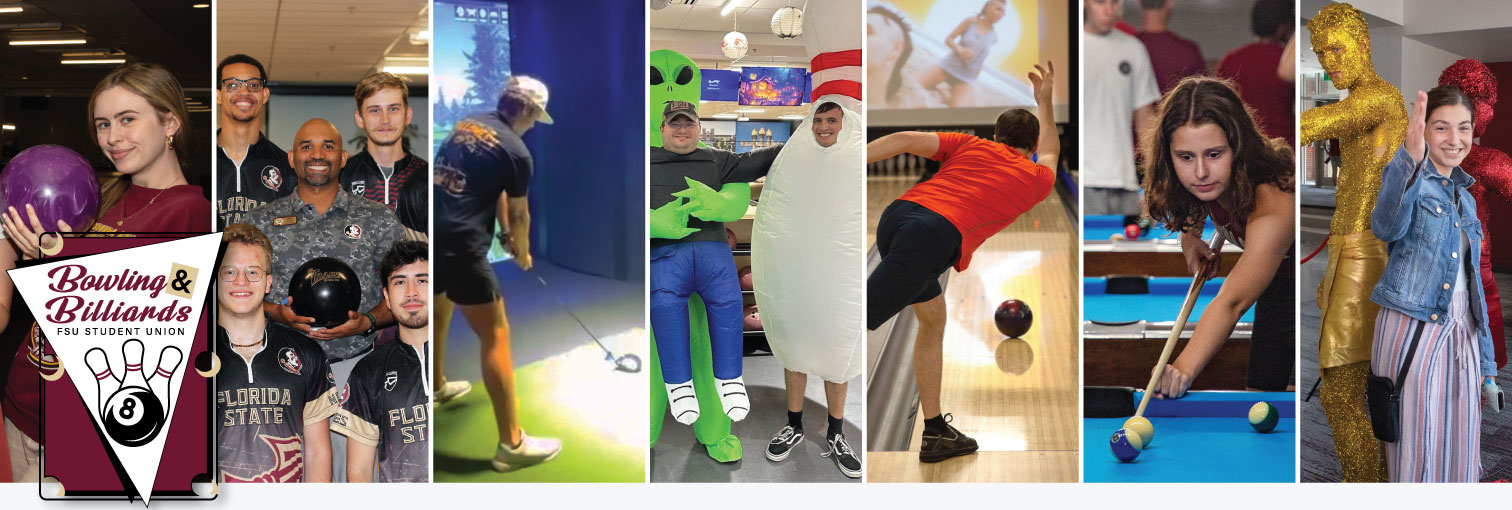 An FSU tradition since 1964, Bowling and Billiards offers an exceptional recreation experience with twelve bowling lanes, seven billiard tables, a full-service pro shop, and a multi-sport simulator. Join a league, play in a tournament, or just hang out with friends for cosmic bowling and late-night fun—all right in the heart of campus. Home of the nationally ranked FSU Bowling Team!